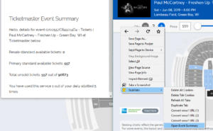 StubTabs is launching our Event Summary feature. The Event Summary will show you the number of tickets remaining for the event page you are on. This only works on TM and LN.